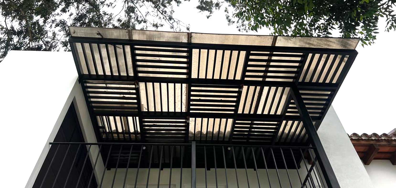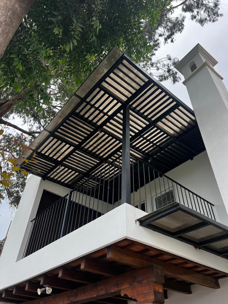 Cada pérgola es única, porque cada cliente le da el toque especial. Cuéntanos tus sueños y nosotros lo hacemos realidad. Para este proyecto el cliente ha solicitado tener una estructura tipo industrial, con un diseño moderno y minimalista y lámina doble pared de policarbonato. Ideal para poder disfrutar de un momento de descanso, tranquilidad o para compartir con amigos.