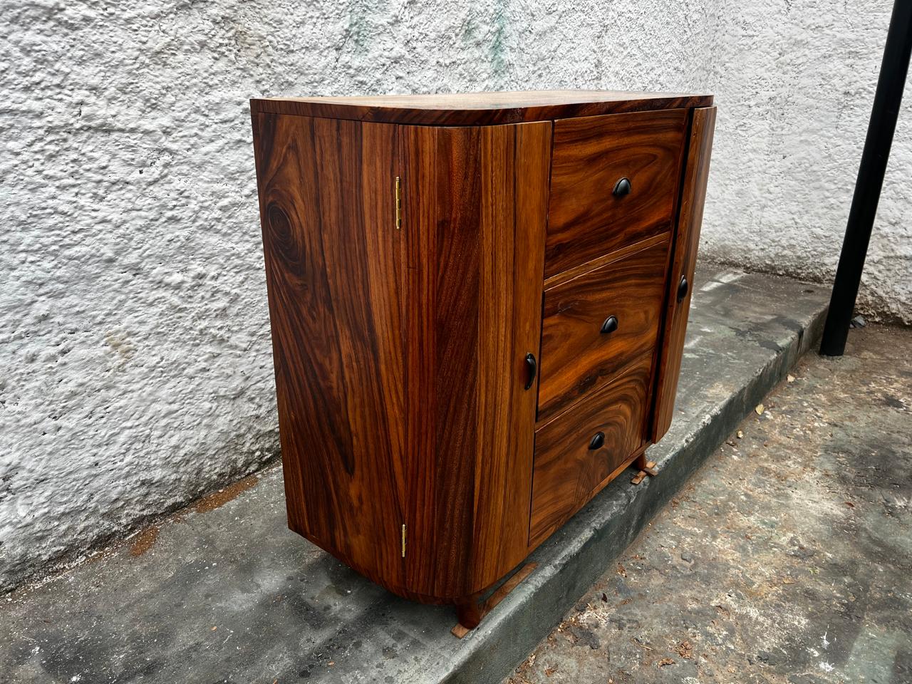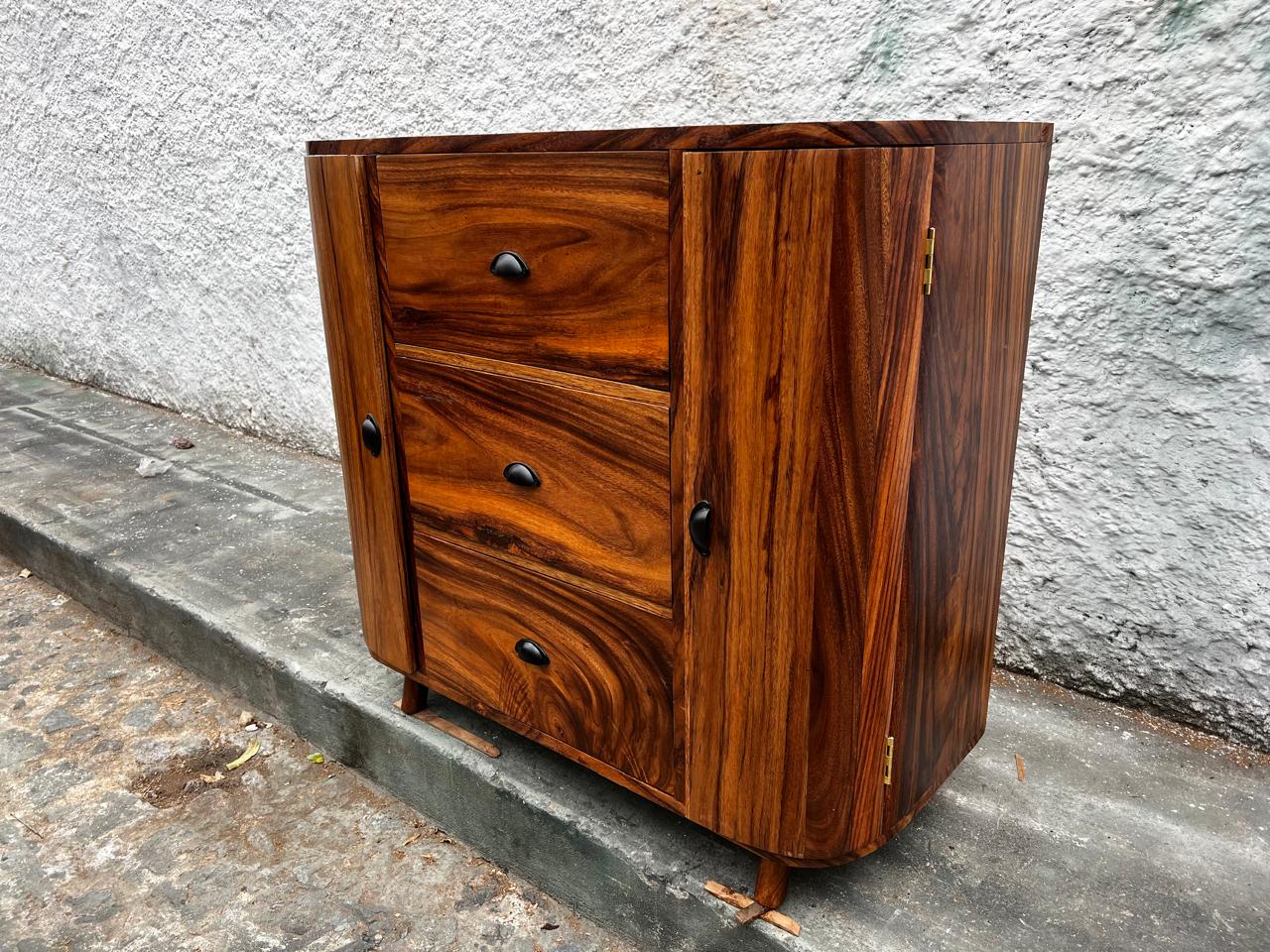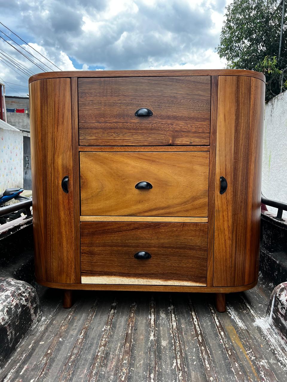 Transformamos la madera de conacaste en este hermoso mueble, ideal para armonizar tu habitación. Con detalles curvos en las puertas laterales y tres gavetas frontales. Parte de la belleza del conacaste son sus características vetas, que dejadas a su color natural nos regalan este precioso resultado.