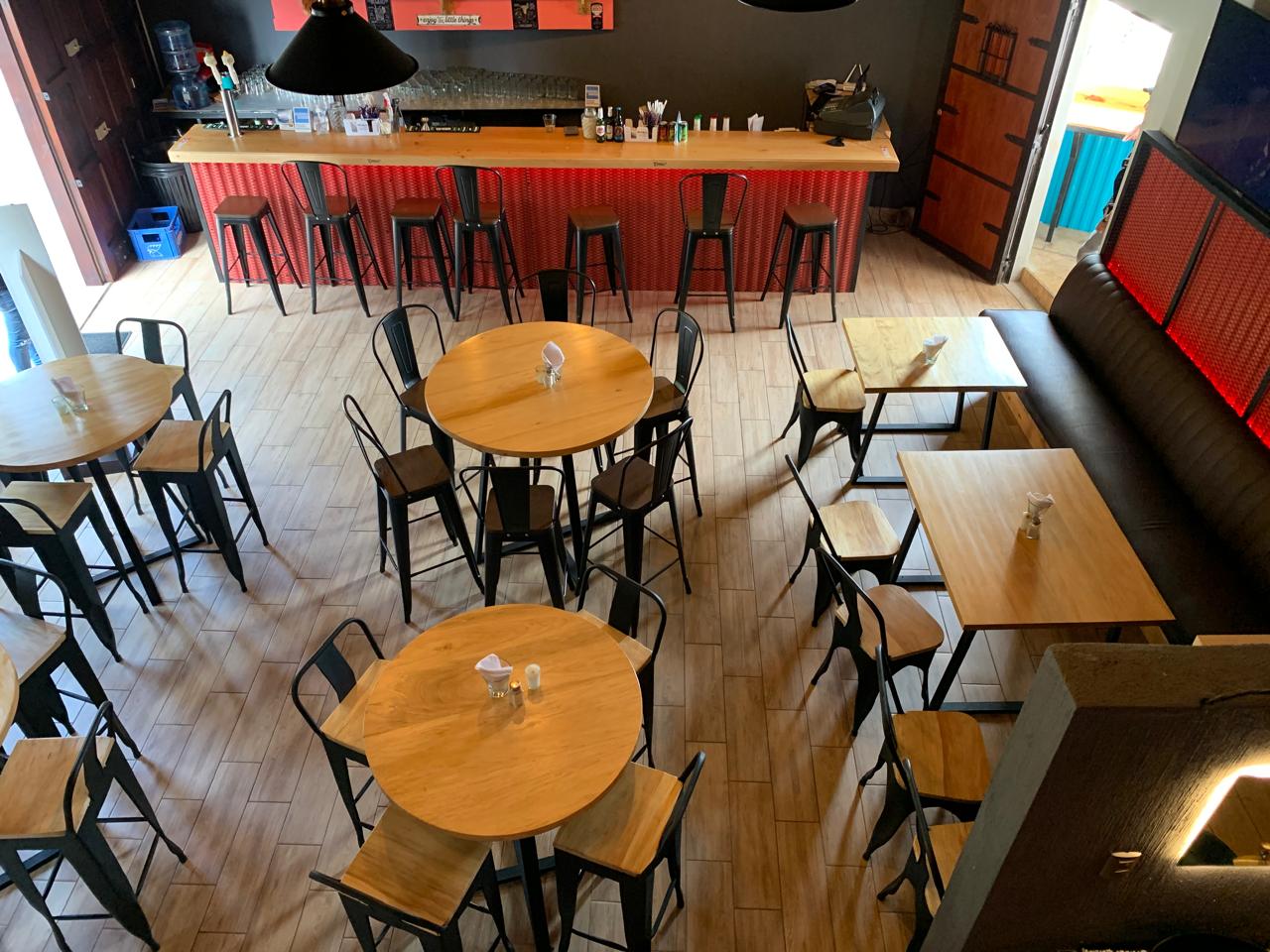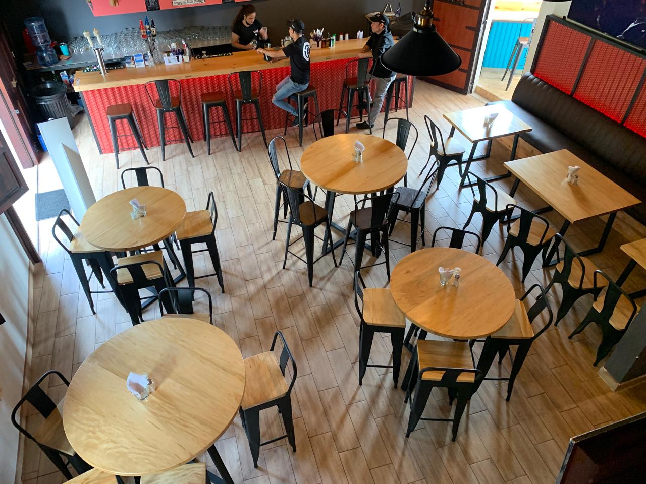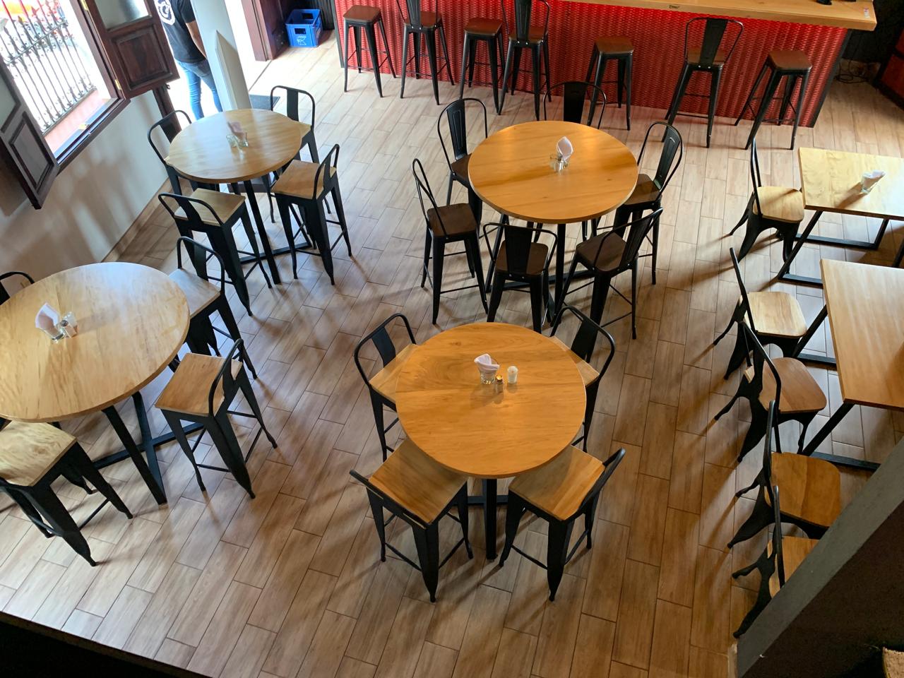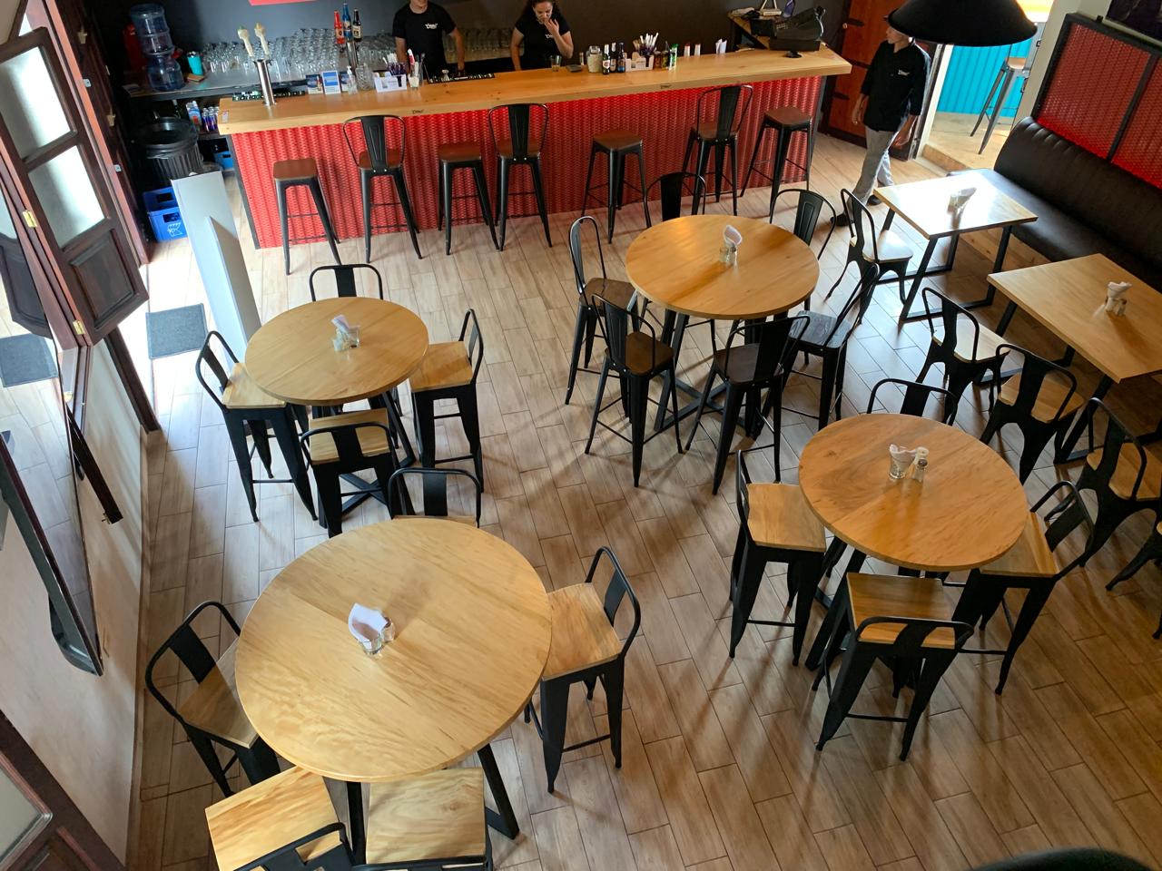 Nada nos hace más felices y agradecidos que ser parte de los sueños de nuestros clientes. Comparte con nosotros tus ideas y nosotros las hacemos realidad. En este proyecto hemos utilizado madera de palo blanco para los tops de las mesas y los asientos de sillas y bancos y estructura metálica para las bases, dejando la madera a su color natural utilizando los productos adecuados para garantizar su durabilidad, sabiendo que serán utilizadas en un restaurante con alto tráfico.