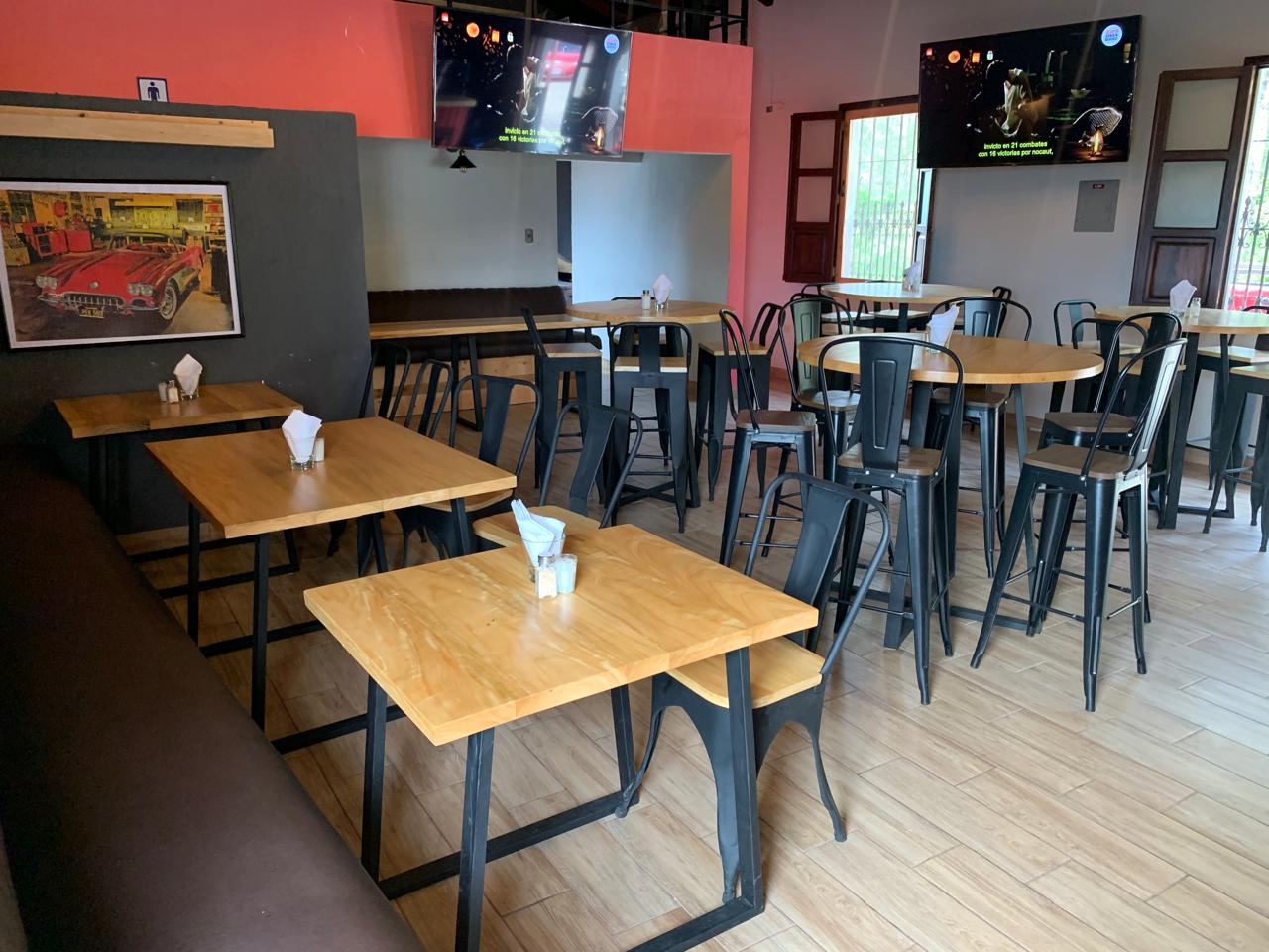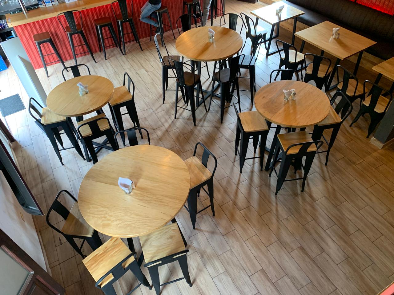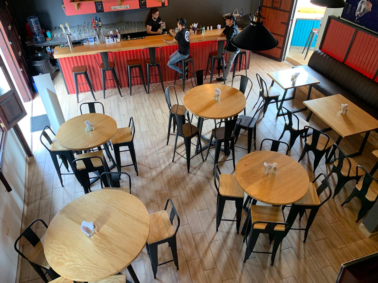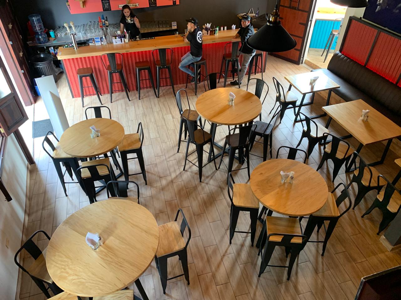 Nada nos hace más felices y agradecidos que ser parte de los sueños de nuestros clientes. Comparte con nosotros tus ideas y nosotros las hacemos realidad. En este proyecto hemos utilizado madera de palo blanco para los tops de las mesas y los asientos de sillas y bancos y estructura metálica para las bases, dejando la madera a su color natural utilizando los productos adecuados para garantizar su durabilidad, sabiendo que serán utilizadas en un restaurante con alto tráfico.