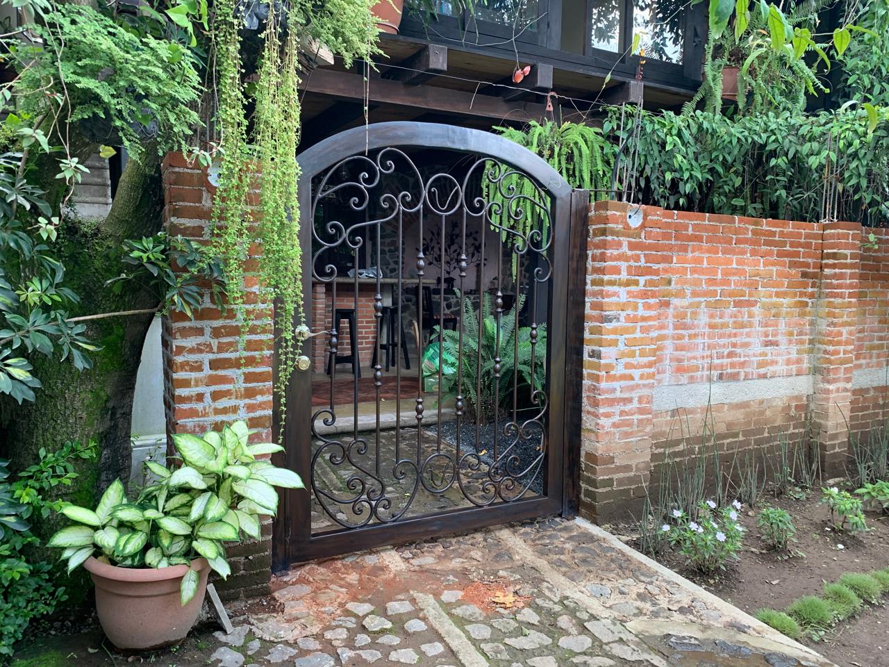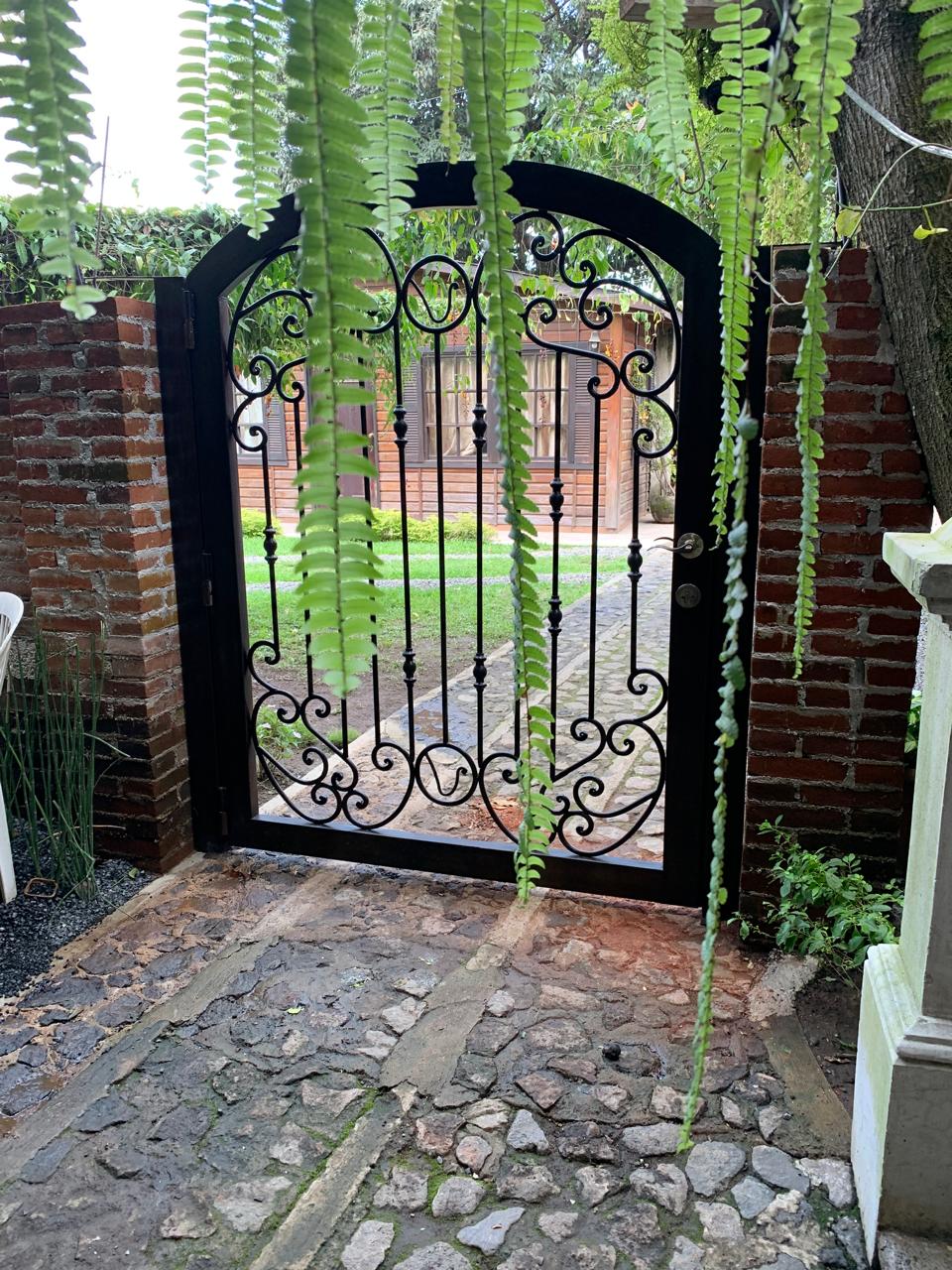 Este portón fue elaborado con marco en tubo rectangular. En Ironwood hacemos el análisis de peso, tamaño y puntos de anclaje para recomendarle a nuestros clientes el tipo de perfiles que se ajustan a sus proyectos y garantizar la durabilidad de los mismos. Este portón tipo reja tiene detalles forjados que le dan un toque colonial hermoso, totalmente combinable con el precioso jardín de nuestro cliente.