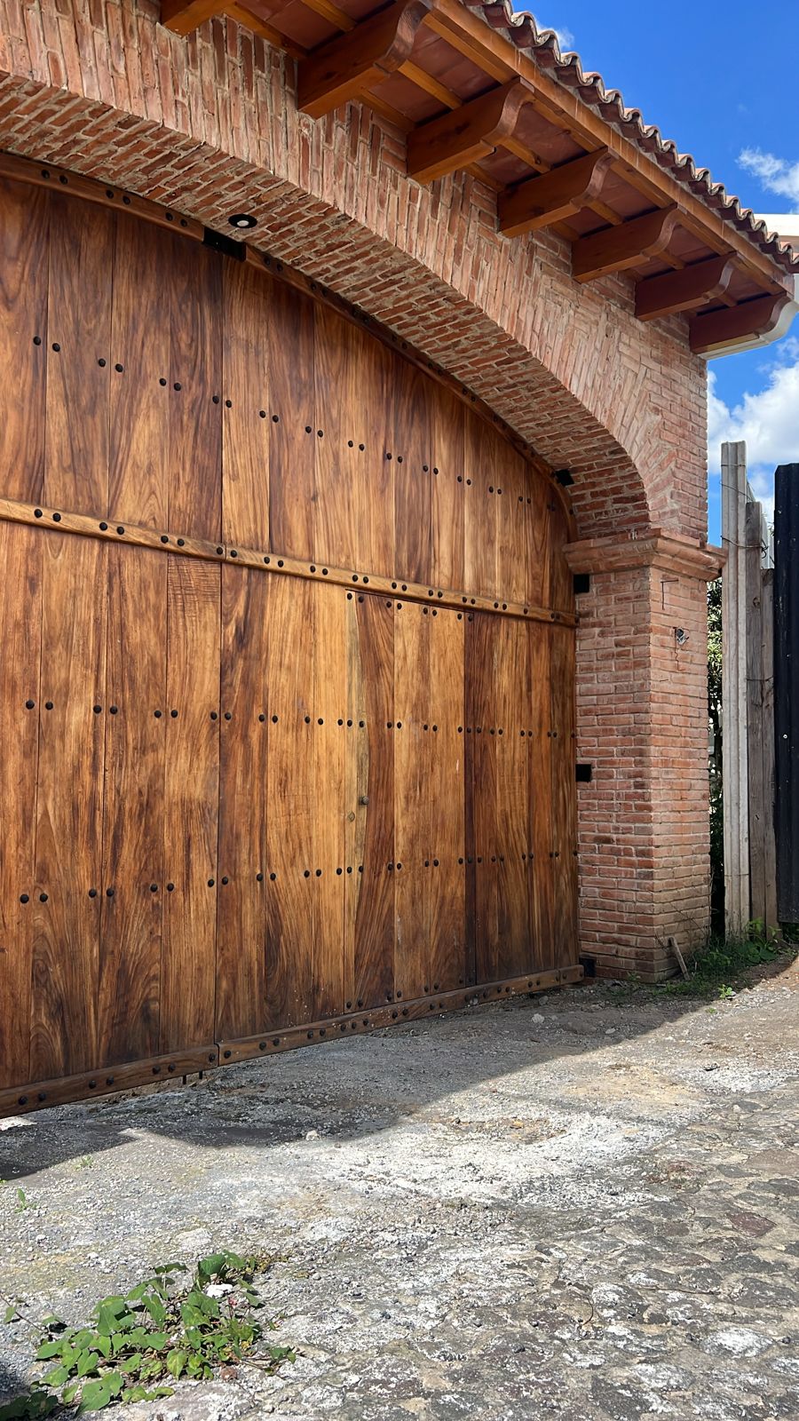 Este mega portón en madera de conacaste es un detalle impresionante para dar la bienvenida perfecta a cualquiera que visite tu hogar, negocio o condominio. Con estructura de metal, bisagras artesanales y duelas de madera con detalle curvo en la parte superior. Nuestros carpinteros y herreros han hecho un trabajo extraordinario mezclando los materiales en los que son especialistas.