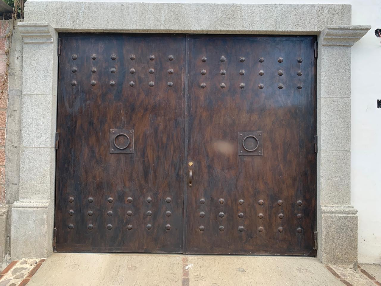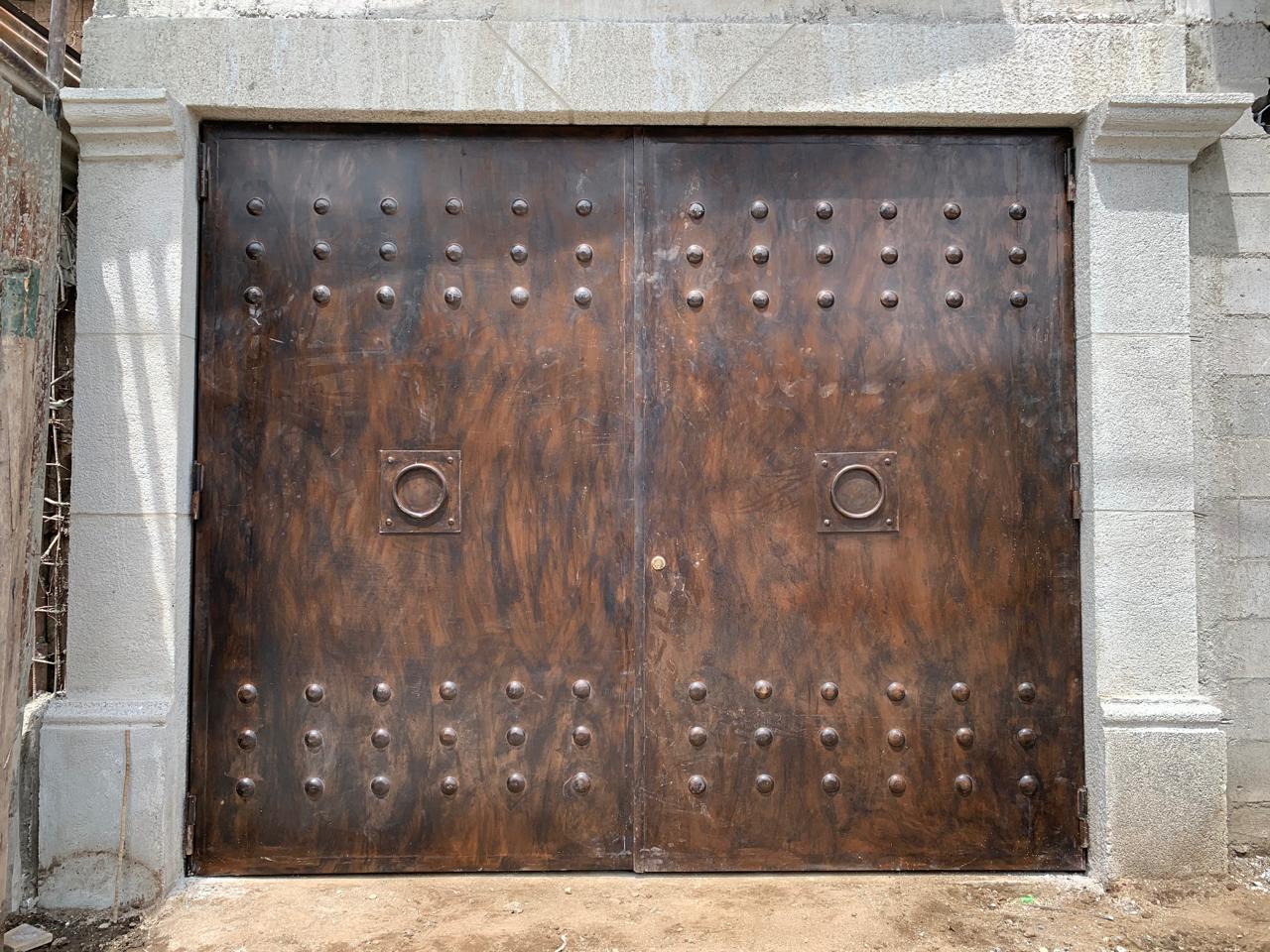 Nuestros herreros trabajan cada detalle con el mayor cuidado para obtener resultados como éste. Portón con marco de tubo rectangular y lámina lisa con detalles de tachones, recubierto con fondo automotriz y pintura anticorrosiva para prolongar su vida útil.